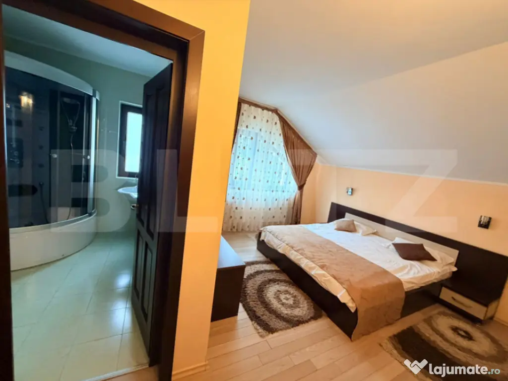 Blitz propune spre vanzare proprietate ideală pentru familie numeroasă, pensiune, business de închiriere sau casă multifuncțională! ???? Detalii și compartimentare: Parter • Cameră primitoare • 2 garaje generoase • Cămară pentru depozitare • Recepție / zonă de întâmpinare • WC de serviciu • Cameră de prană • Bucătărie complet utilată, cu mașini și electrocasnice incluse • Terasă spațioasă, ideală pentru relaxare • Dormitor cu baie proprie Etaj 1 • 4 dormitoare, fiecare cu baie proprie • Cameră de dressing încăpătoare Etaj 2 • 2 camere duble, fiecare cu baie proprie • 2 camere triple, fiecare cu baie proprie • Acces la pod prin scară rabatabilă Avantaje • Compartimentare excelentă pentru locuire sau activități comerciale • Spații multe și funcționale • Preț 379.999 €, negociabil Cod ofertă / ID BLITZ: P158743 Id intern: P158743 Număr niveluri imobil: 2 Număr Băi: 10 Curent Apă Canalizare Gaz