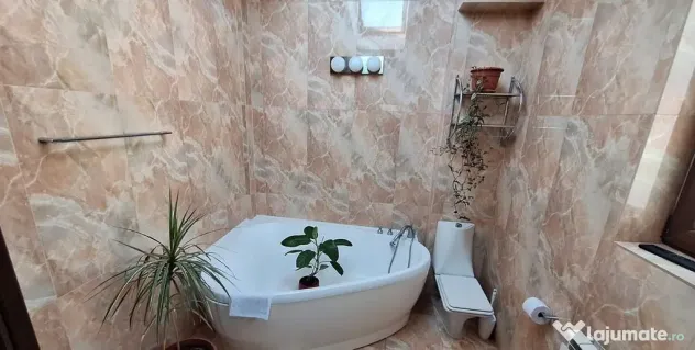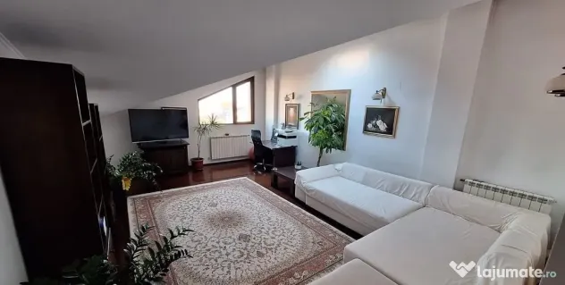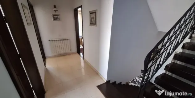 La etaj sunt 2 dormitoare, hol si baie iar la mansarda este un dormitor mare cu baie.