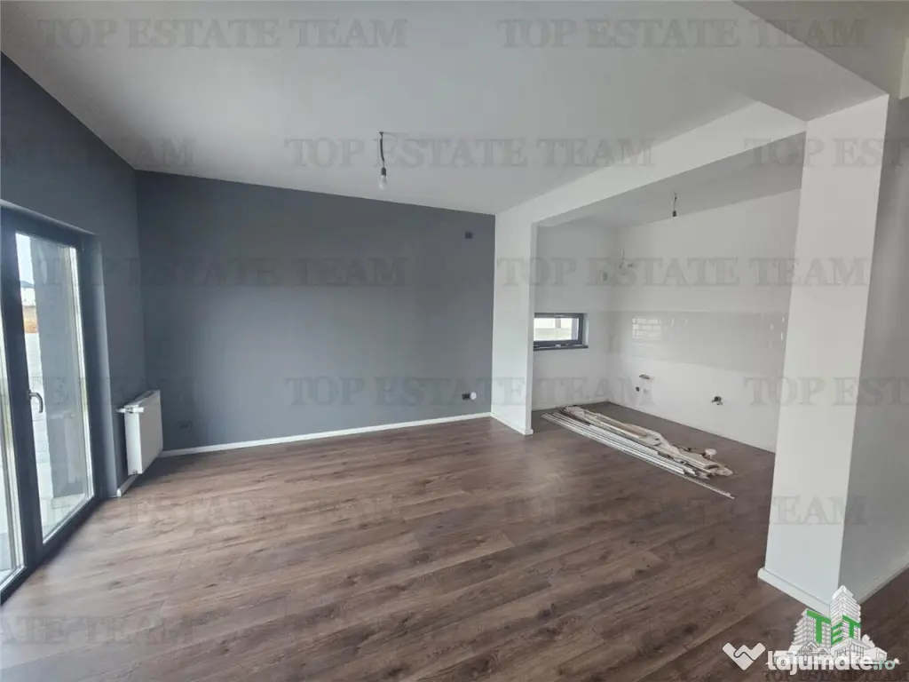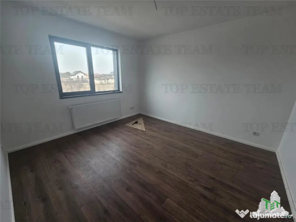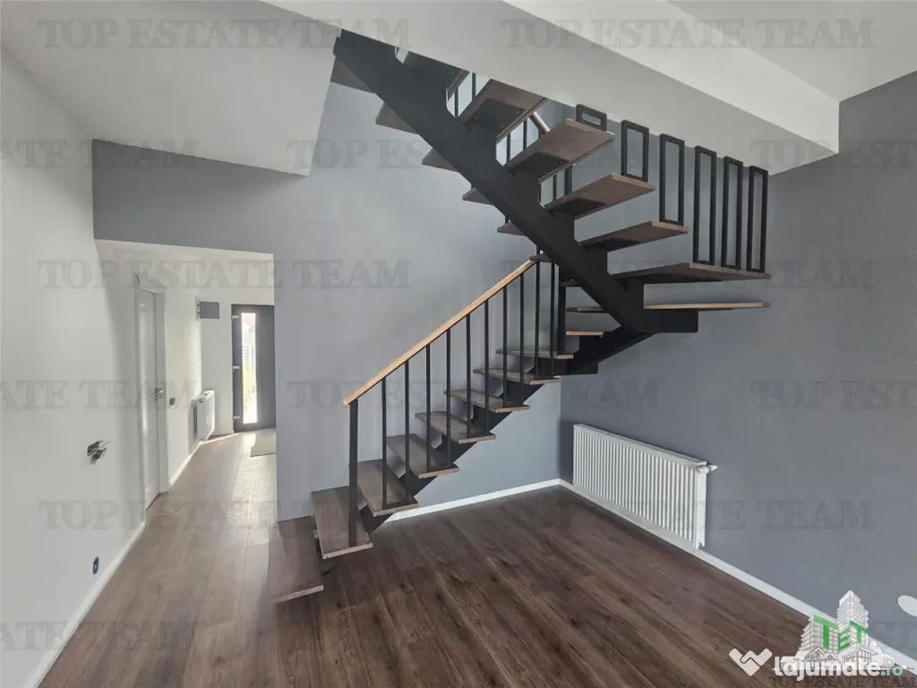 Compartimentare: Vestibul, dressing, baie, Living dinning 30mp cu iesire pe terasa neacoperita, bucatarie partial inchisa (se poate inchide cu geamuri glisante) la parter; 3 dormitoare (1 matrimonial spatios 21mp cu baie si balcon), hol si 1 baie. Scara retractabila pentru acees in pod depozitare.