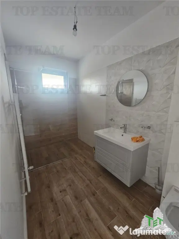 Constructie solida din cadre de beton armat si caramida porotherm, izolata cu polistiren 10cm EPS 80. Izolatie extrudat peste placa2 spre pod. Pereti exteriori placati cu piatra decorativa. Curte amenajata cu gazon. Tamplarie PVC tripan.