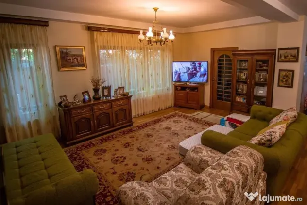 Vila P+1+M +Terasa 30 mp inchisa,2 bucatarii +4 bai, 5 camere,1 balcon,curte pavata cu pavele,2 locuri parcare,,acoperis tigla,anvelopata,vopsita cu lavabila structurata,centrala termica,2 ideala pentru locuit .