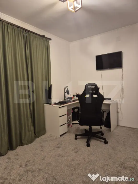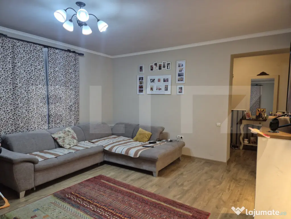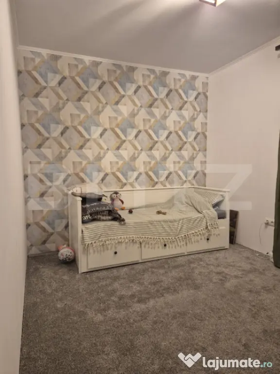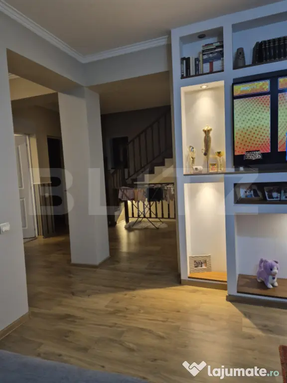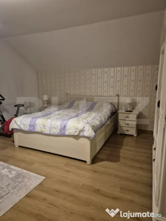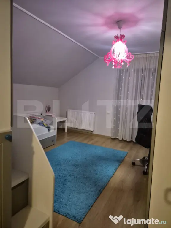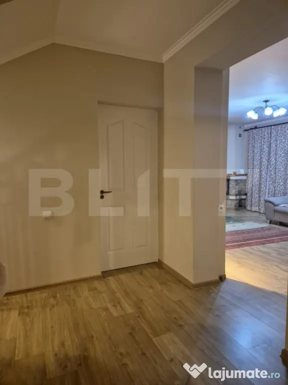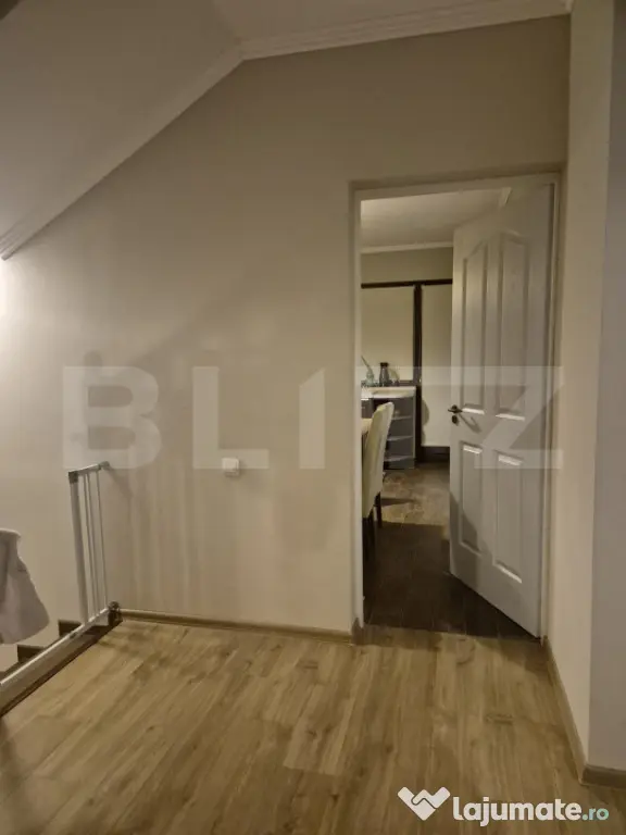 - Parter: living luminos, bucătărie mobilată, dormitor, baie, hol