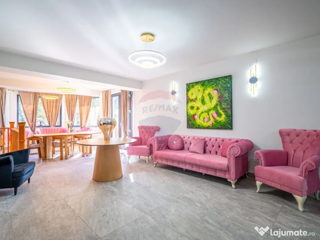 Va propun spre vânzare în sistem de reprezentare exclusiva cu COMISION 0% pentru cumpărător, o vilă ultramodernă situată in inima stațiunii montane Sinaia, finisată în 2025. Aceasta oferă un echilibru perfect între eleganță contemporană și funcționalitate. Structurată pe patru niveluri (Demisol + Parter + Etaj + Mansardă), proprietatea este ideală atât ca reședință permanentă, cât și ca investiție în turismul de tip boutique. Sinaia, cunoscută drept „Perla Carpaților”, este o stațiune montană de renume situată pe Valea Prahovei, la poalele Munților Bucegi. Stațiunea este apreciată pentru peisajele sale spectaculoase, patrimoniul istoric și cultural bogat, precum și pentru infrastructura turistică dezvoltată. Printre atracțiile de top se numără: Castelul Peleș – unul dintre cele mai frumoase castele din Europa, reședință regală a regelui Carol I. Mănăstirea Sinaia – fondată în 1695, este considerată „cartea de identitate” a orașului. Parcul Dimitrie Ghica – un spațiu de relaxare și recreere, situat în centrul orașului, decorat cu statui, fântâni și alei umbrite. Telecabina și Gondola Sinaia – oferă acces facil la Cota 1400 și Cota 2000, deschizând drumul către trasee montane și pârtii de schi. În sezonul rece, Sinaia devine un paradis pentru sporturile de iarnă, având cel mai complex și complet domeniu schiabil din țară, cu pârtii dispuse la peste 1000 de metri altitudine. Această vilă impresionantă, situată în zona centrală a stațiunii, se remarcă prin designul său modern și finisajele de înaltă calitate. Demisol: Recepție elegantă, ideală pentru primirea oaspeților. Spațiu generos ce poate fi transformat într-un lounge confortabil sau sală de socializare. Parter: Living spațios cu ferestre mari, ce permit luminii naturale să inunde încăperea, oferind acces direct la o terasă cu vedere panoramică spre Munții Bucegi. Bucătărie modernă, complet utilată; Dormitor confortabil, ideal pentru oaspeți sau membri ai familiei; Baie completă și cameră tehnică pentru utilități. Etaj: 4 dormitoare matrimoniale, fiecare cu baie proprie, asigurând intimitate și confort; Unul dintre dormitoare dispune de spațiu de birou, ideal pentru activități profesionale sau studiu; Saună modernă, perfectă pentru relaxare după o zi activă. Mansardă: Dormitor cu baie proprie, oferind intimitate și confort; Bucătărie proprie; Terasă cu priveliște uimitoare spre Munții Bucegi, locul perfect pentru momente de relaxare. Curtea este frumos amenajată, cu terase îngrijite, zone verzi și spații intime de relaxare. Oferă intimitate totală și vedere spectaculoasă către munți, fiind locul ideal pentru petrecerea timpului liber în aer liber. Proprietate este o alegere excelentă pentru cei care caută un stil de viață montan de înaltă calitate sau o investiție turistică de tip boutique, într-o stațiune cu renume internațional. Sinaia, orașul regal, este locul unde luxul, natura și istoria se împletesc armonios. Număr niveluri imobil: 2 Număr Băi: mai mult de 3 Posibilitate parcare: Nu Curent Apă Canalizare Gaz Încălzire Demisol