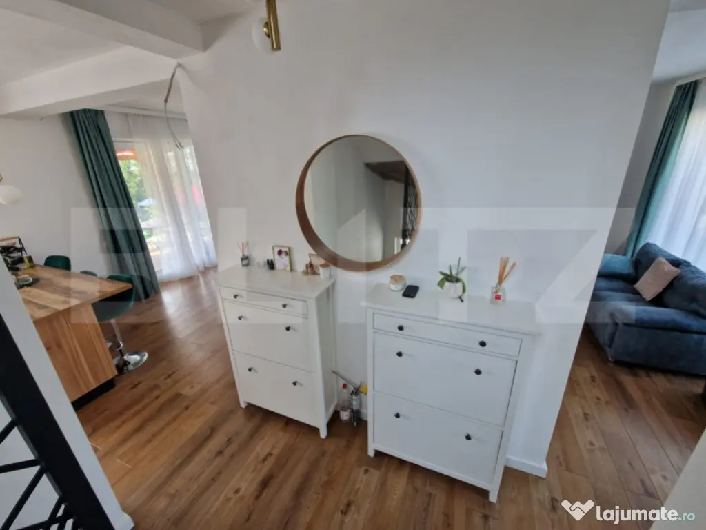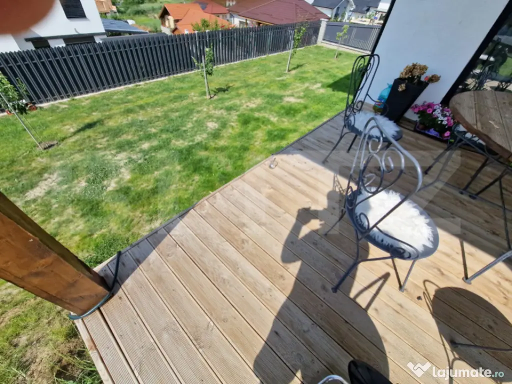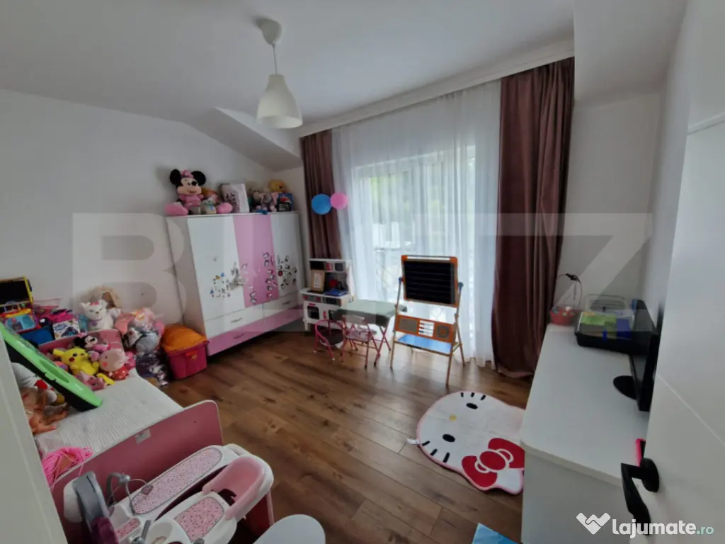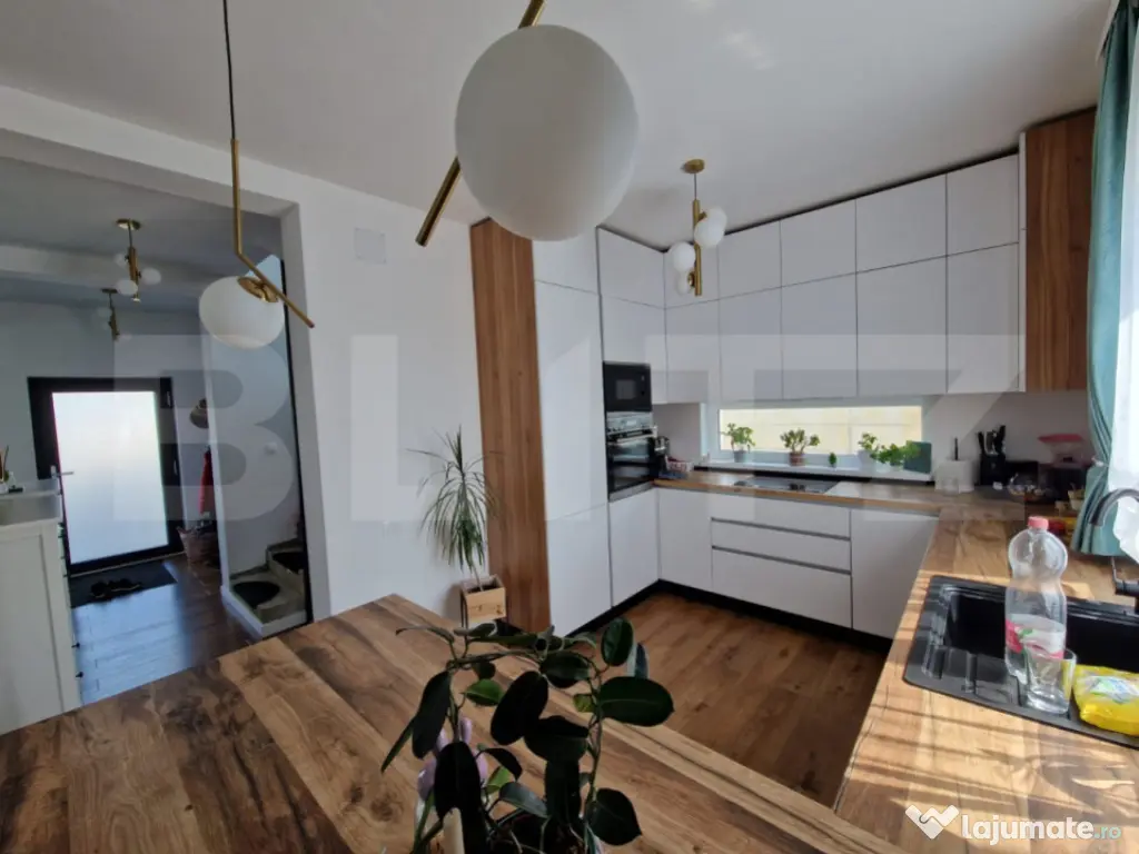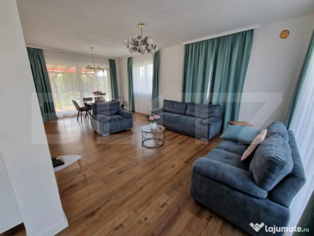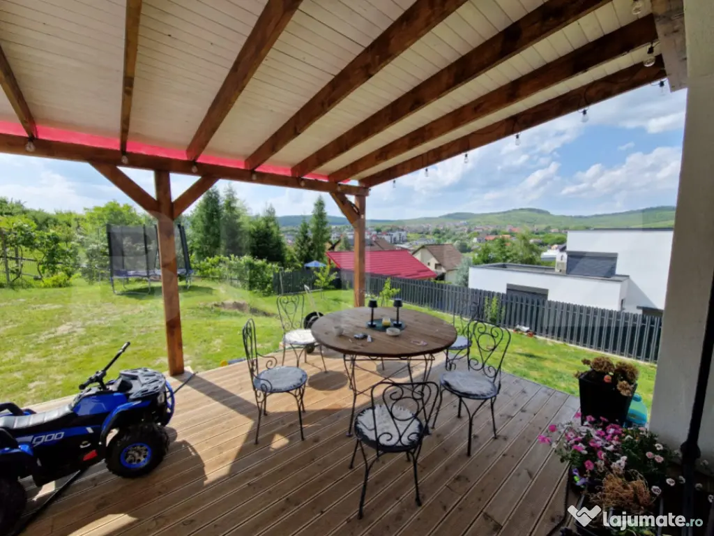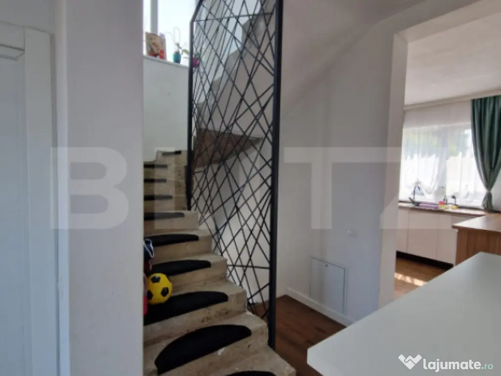 Vila este compusa din 3 dormitoare, 3 bai, living generos cu bucatarie open space complet mobilata, spatii tehnice, sala hobby la demisol. Izolatia esterioara este de 15 cm iar panourile fotovoltaice produc 11 kw asfel fiind asigurata independenta energetica a proprietatii. Vila este incalzita cu ajutorul pompei de caldura si a incalzirii in pardoseala. Va asteptam la vizionare!