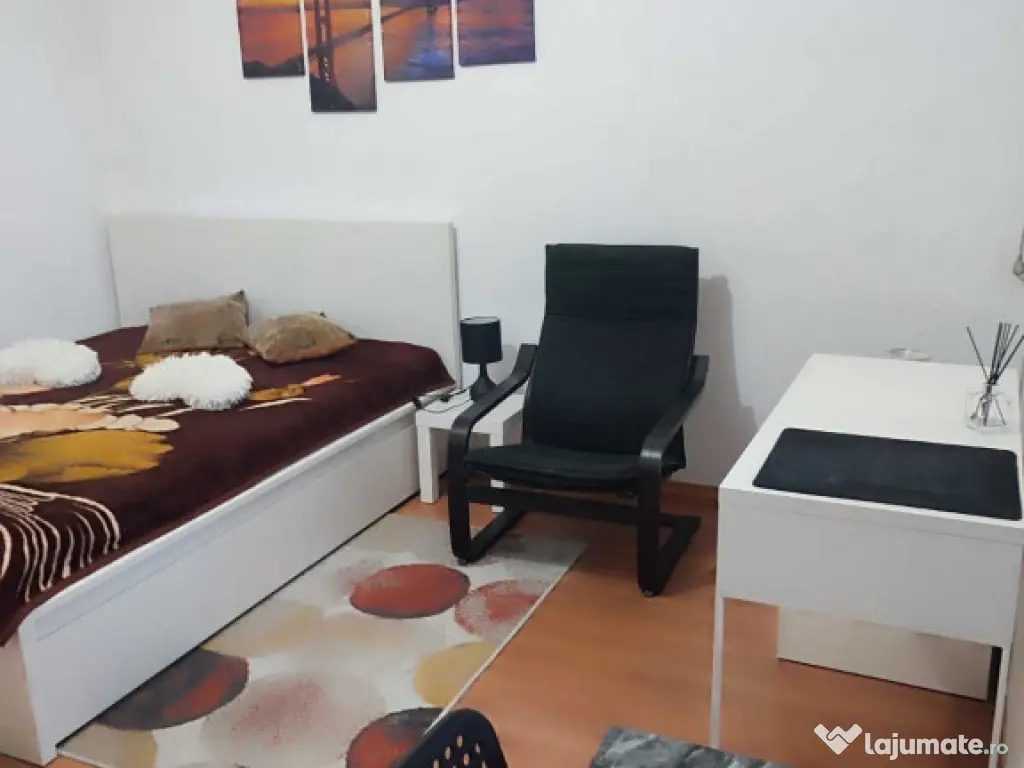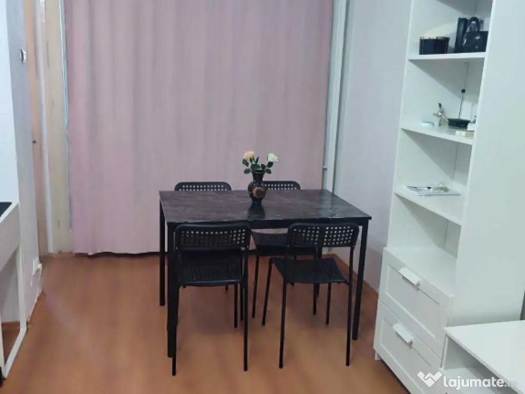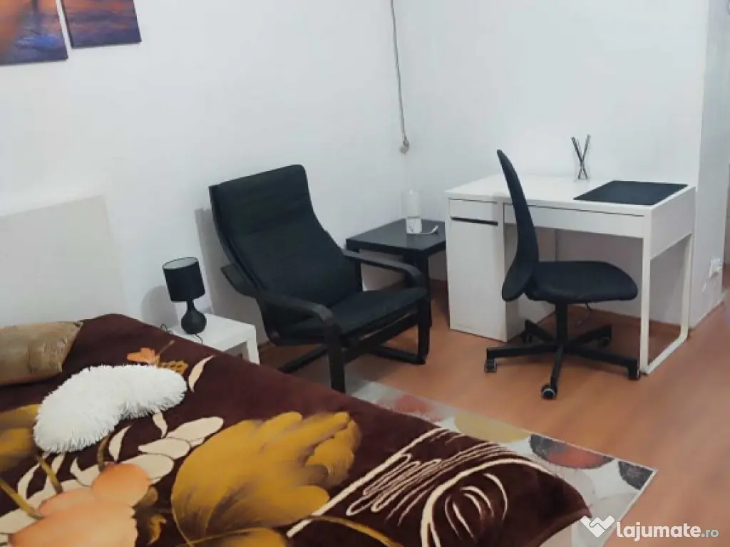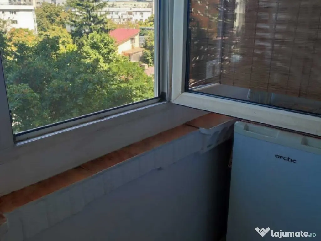 garsoniera renovata in 2025, complet utilata. Se compune din: - hol (gresie) cu spatiu de depozitare - baie (gresie/faianta) cu cada, apometre si masina de spalat - sufragerie si dormitor in camera principala: parchet laminat, pat 160/200, birou, dulapuri, masa cu 4 scaune, climatizor. - bucatarie decomandata utilata: mobila, aragaz, cuptor cu microunde, masina cafea. - balcon inchis cu geamuri termopan. Frigider. Garsoniera este la etajul 4 intr-un bloc cu 10 etaje care se afla la 30m de statia Stadion Olimpia (autobuze:123 si 135). Blocul are interfon, usa termopan, 2 lifturi, supraveghere camere, incalzire centralizata. Nu fumatori si nici animale de companie. Confort: 1 Tip imobil: Bloc de apartamente Comision cumpărător: 50%