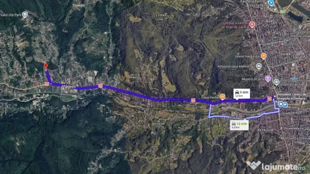 Se poate ajunge foarte rapid din oras, maxim 10 minute, acces asfaltat integral, ruta fiind deservita foarte bine si de transportul in comun. In proximitate avem o zona comerciala importanta cu supermaket si alte servicii, utile pentru nevoile curente ale locuirii la casa, dar si gradinita, scoala si sala de sport noua, toate dotate la standarde moderne.