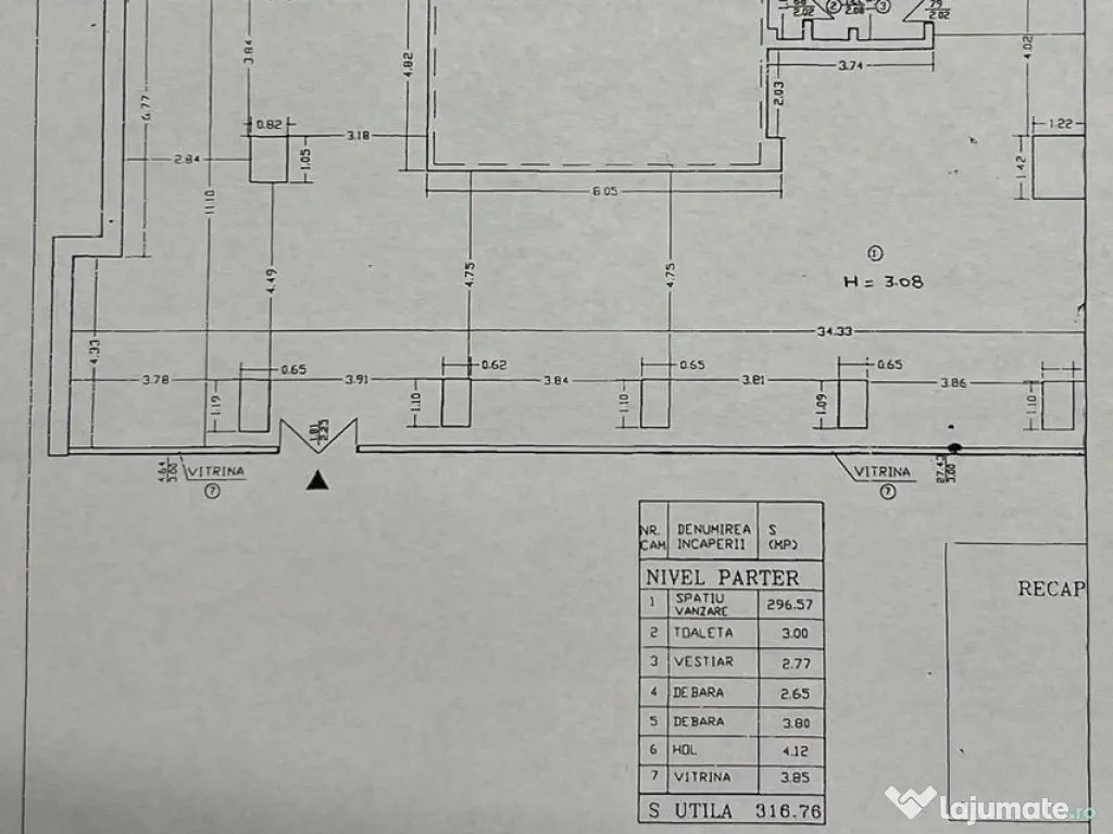 Imobiliar Expert Grup va propune spre închiriere spațiu comercial în suprafața de 160 mp situat în zona Calea Griviței. Spatiul este open space , dispune d toate utilitatile, curent trifazic, vitrina 22 ml. Ideal pentru farmacie ,banca, market, cabinet medical etc. Suprafaţă totală: 160 m² An finalizare construcție: 1975 Vitrină: 22.0 m Stadiu construcţie: Finalizat Posibilitate parcare: Nu Tip imobil: Spaţiu stradal
