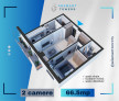 2 camere, 66,5 mp (59,4 mp utili) + spațiu de depozitare 3,2 mp