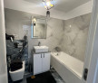 Baie modernă cu plăci mari, rezervor WC suspendat