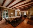 Living generos de ~70 mp, cu tavan înalt, șemineu, zonă de dining și lounge