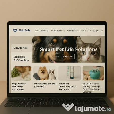 Designul site-ului este comparabil cu cel al brandurilor globale de top din industria produselor pentru animale — oferă încredere instantă clienților și o rată de conversie ridicată.