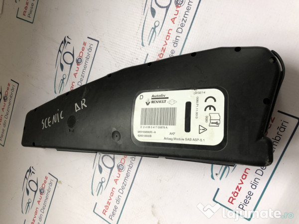 Airbag scaun dreapta fata Renault Scenic 2014. Cod(uri): 985H09680R. Piesele comercializate sunt originale, provenite din dezmembrari. Dispunem de o gama larga de piese multimarca. Piesele sunt verificate inainte de a fi puse spre vanzare. In caz de neconformitate piesa se poate returna. Va rugam sa verificati disponibilitatea pieselor telefonic. Trimitem in tara prin curier.
