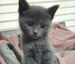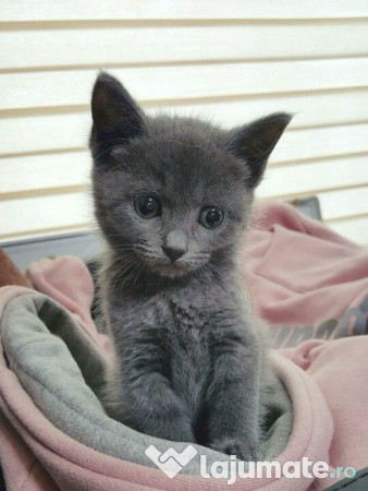 Albastru de Rusia în vârstă de 8 săptămâni deparzitat intern și extern face la litieră cu nisip mănâncă bobite și hrană de junior