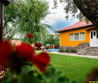 Gradina are gazon perfect, cu arbori decorativi, un sistem de iluminat feeric care creaza un cadru idilic.