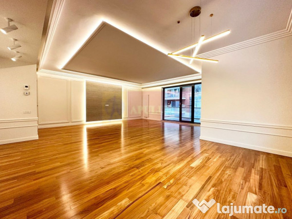 4 camere decomandate, situat în ansamblul Washington Residence, la etajul 1/4, cu 180 mp utili, 2 terase (14 mp și 9 mp), loc de parcare în garaj subteran și boxă de depozitare incluse.