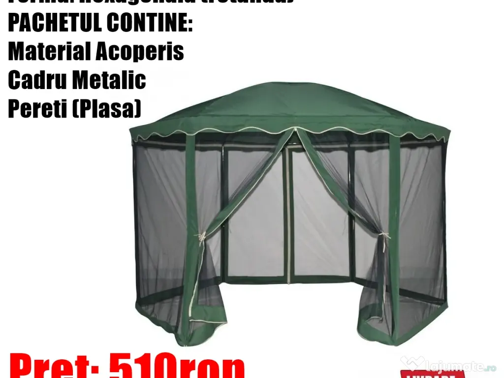 Pavilion CORT Foisor Gradina Curte Terasa Rotund Umbrela Cadru Pereti Plasa