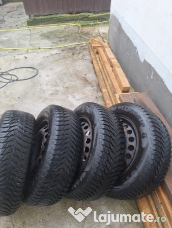 anvelope iarna 195 65 15 Goodyear cu jante otel 5x112, anvelopele au dot 25 22 au fost folosite 4 luni.
