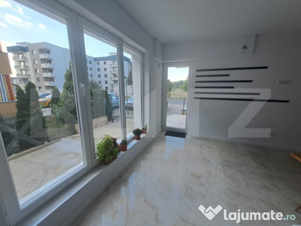Va propun spre vanzare un apartament cu 3 camere, spatios, nemobilat, in cartier Tractorul, pe str Nicolae Labis 15, la numai 5 minute de Coresi Shopping Center. Apartamentul -constructie noua 2023 are in apropiere toate facilitatile necesare, fiind pozitionat intr-o zona cu mult potential pentru o afacere. Este special conceput sa gazduiasca cu tandrete activitati in care vor pasi multi clienti,de aceea este decomandat si dispune de living cu bucatarie openspace de aprox. 30 mp, cu acces pe terasa, respectiv, in gradina, doua dormitoare (dintre care unul cu acces pe terasa), si 2 bai, dintr care una cu acces direct din parcare, ideala si pentru a fi folosita ca spatiu de depozitare,si care poate fi amenajata ca o a doua baie daca este necesar, avand toate instalatiile pregatite pt a fi folosita ca atare.In acest caz intrarea in baie se va face din dormitorul matrimonial. Proprietatea dispune de incalzire in pardoseala, pt un plus de confort si rafinament.