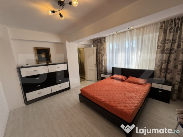 Apartamentul este decomandat si beneficiaza de doua bai, oferind astfel un confort sporit. Este dotat cu centrala termica proprie, aer conditionat si un TV Smart in dormitor, asigurand astfel toate conditiile pentru un trai modern. In plus, chiriasul va avea la dispozitie un loc de parcare privat.