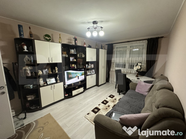 Locuința se vinde parțial mobilată, permițând viitorului proprietar să-și personalizeze spațiul după propriile preferințe, păstrând în același timp câteva piese utile și bine întreținute. Compartimentarea este eficientă, cu un living luminos, un dormitor confortabil, o bucătărie practică și o baie amenajată funcțional.
