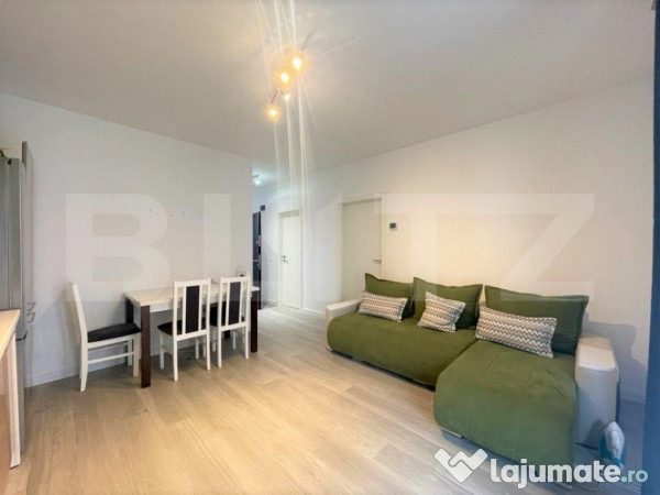 Blitz iti propune spre inchiriere un apartament cu 2 camere, in suprafata de 40 mp, in zona Chinteni, amplasat in Beta Residence, la 8 minute distanta de Auchan Iris. Statia mijlocului de transport in comun este situata chiar in ansamblu, magazin alimentar, aprozar si farmacie.