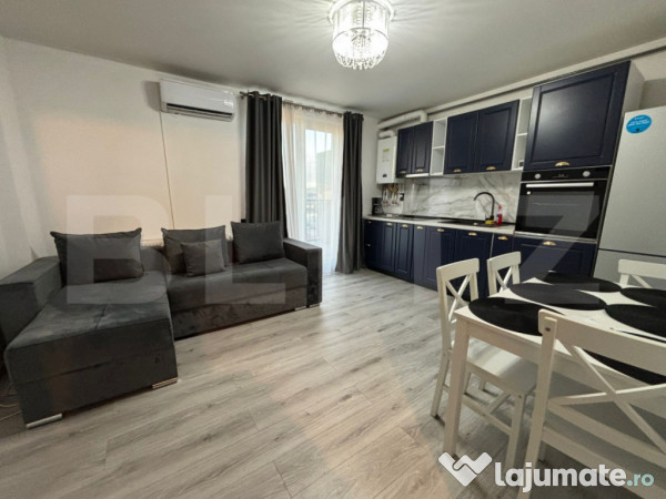 Apartamentul este complet mobilat și utilat cu mobilier de calitate superioară și electrocasnice noi, oferind un design modern și funcțional, perfect pentru a fi locuit imediat.Unul dintre punctele forte ale acestei proprietăți este terasa generoasă, ideală pentru momentele de relaxare, socializare .Locația este deosebit de avantajoasă, având în apropiere supermarketuri, stații de autobuz și diverse alte facilități esențiale pentru un stil de viață confortabil. Zona este bine conectată și oferă acces rapid către puncte de interes, fiind perfectă atât pentru locuit, cât și pentru investiție.Această proprietate reprezintă o combinație ideală între confort, modernitate și accesibilitate!