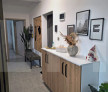 Livingul spatios este de sine statator, oferind posibilitatea inchiderii si transformarii intr-un al doilea dormitor. Bucataria este inchisa si complet mobilata si utilata. Baia spatioasa dotata cu vana si masina de spalat, are geam exterior. Dormitorul matrimonial este generos ca spatiu si foarte bine organizat.