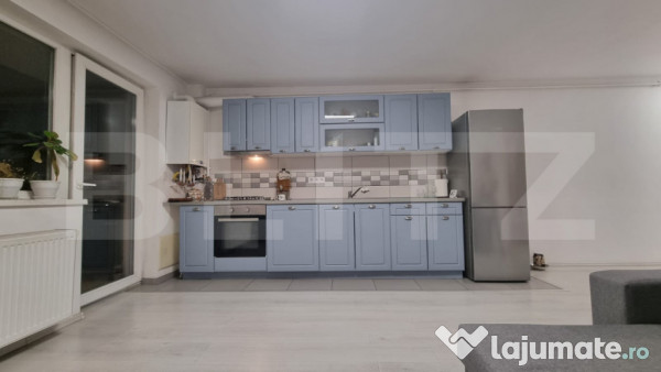 Apartamentul este situat la etajul 5 din 6, într-un bloc nou, dotat cu două lifturi moderne, oferind acces facil și confort zilnic. Se vinde complet mobilat și utilat, cu electrocasnice de calitate: frigider, mașină de spălat vase, mașină de spălat haine, cuptor electric, plită pe gaz și hotă – totul pregătit pentru a te muta imediat, fără investiții suplimentare.