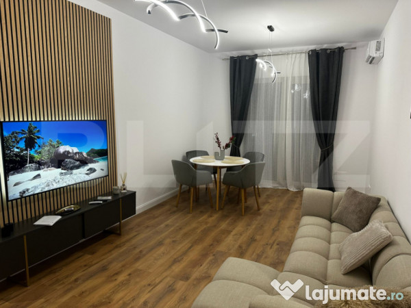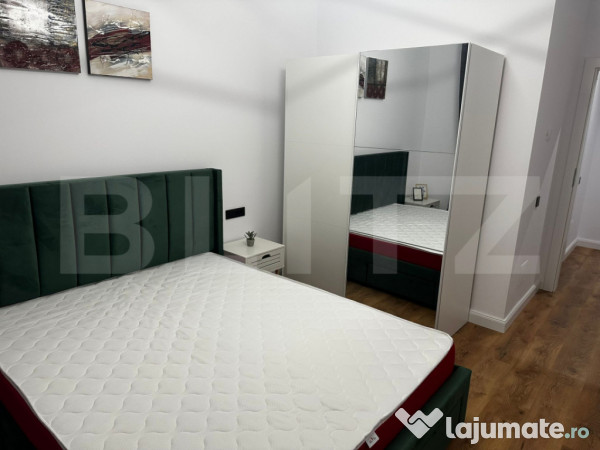 Blitz ofera spre vanzare un apartament de 2 camere cu CF gata de mutat în cartierul Iris langa viitorul mall RIVUS, intr-un bloc cu finalizat in 2025, intr-una din zonele in plina dezvoltare din Cluj Napoca, la cateva minute distanta de ceea ce va fi complexul Rivus si parcul Feroviarilor. Apartamentul se afla la etajul 5 din 7, are o suprafata de 54 mp si 13 mp terasa cu o compartimentare moderna. Este compus din living, bucatarie separata, dormitor, baie si hol cu spatii de depozitare cu posibilitate de recompartimentare in 2 dormitoare decomandate. In plus are o terasa acoperita de aproximativ 13 mp amenajata. Apartamentul se preda conform fotografiilor, finisat si mobilat LUX. Pe langa finisajele si mobilatul modern acesta dispune de geamuri termopan triple de calitate, jaluleze automate, usa metalica la intrare, iar încălzirea este prin pardoseala pentru extra confort. Dispune si de un loc de parcare subteran cu CF la 20000 Euro. Preturile afisate sunt cu TVA INCLUS, se accepta si cu credit bancar. Va asteptam la vizionare!