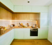 -Bucătărie complet echipată – mobilier la comandă ce integrează perfect centrala și frigiderul, design curat și eficient.
