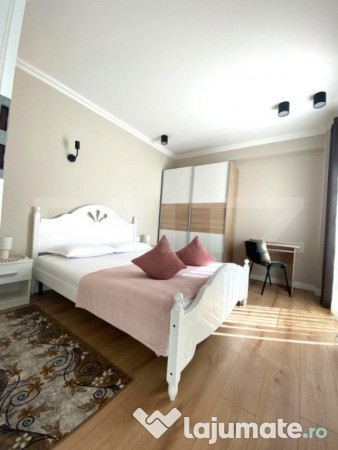 ✔️ Dormitor spațios – pat dublu, dulap încăpător