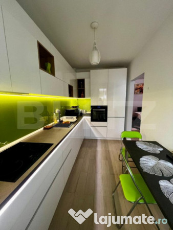 Blitz va propune spre vanzare un apartament cu 2 camere in zona Sopor cu acces facil spre mijloacele de transport in comun, magazine, baza Sportiva Gheorgheni, Iulius Mall, FSEGA etc. Apartamentul se afla la etajul 6 al unui imobil cu 7 etaje, finalizat in anul 2017. Compartimentarea apartamentului este decomandata si este compus din: hol, dormitor, living, bucatarie, baie, balcon inchis cu termopan, dressing. Beneficiaza de centrala termica propie, geamuri termopan, usa metalica la intrare si se vinde mobilat precum reiese in pozele de prezentare. In pret este inclus si un garaj subteran.
