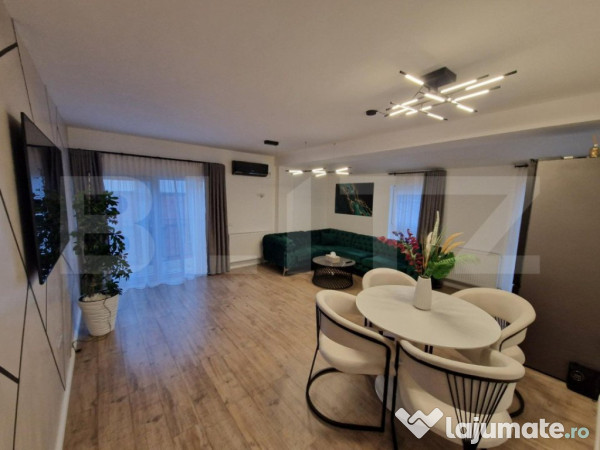 Blitz va propune spre vanzare un apartament modern, situat in zona ultracentrala a orasului, avand suprafata utila de 66 mp, decomandat, fiind compus din bucatarie cu living open space, dormitor, baie, hol si balcon. Apartamentul dispune de loc de parcare subterana si se vinde complet mobilat si utilat.