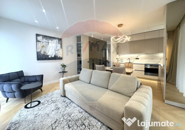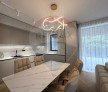 - Dining elegant și bucătărie open space complet utilată, cu finisaje premium și soluții de depozitare integrate, create pentru funcționalitate și stil,