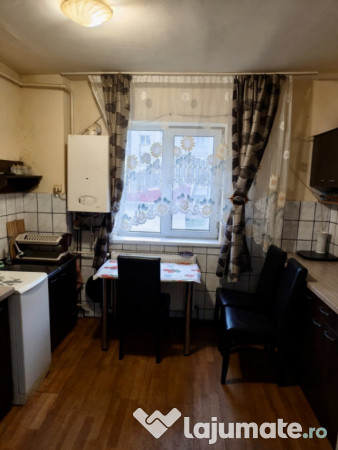 Dispune de bucatarie mobilata si utilata cu aragaz, frigider, masina de spalat, CT.