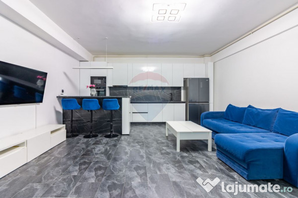 Aflată la parterul (înalt) al unui bloc cu regim mic de înălțime (D + P + 3E), construit în 2010, locuința este semidecomandată și are o suprafață utilă de 60 mp. Dispune de un living foarte spațios (34 mp) cu o bucătărie deschisă (utilată și mobilată), un dormitor mare de asemenea (18 mp), cu baie și dressing.