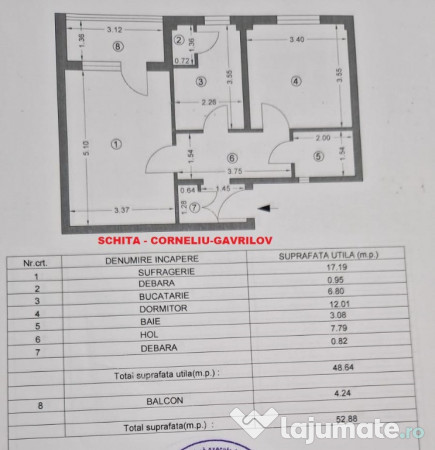 Vindem, apartament cu 2 camere in suprafata de 52mp situat pe str Corneliu Gavrilov, pozitionat la etajul 4 din 4.