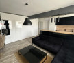 - Bucatarie open-space, complet utilata (hota, plita pe gaz, aragaz electric si frigider) si mobilata) cu zona de dining tip bar.