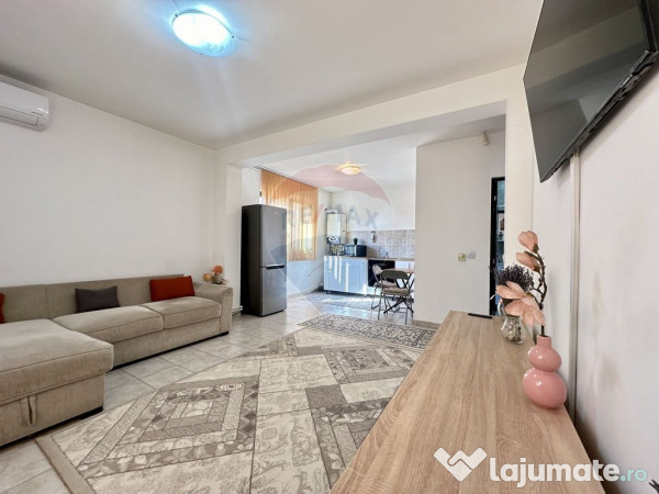 Apartamentul mobilat și utilat, situat la etajul 1, intr-o vila cu doar 3 apartamente, care este ampasata pe un teren de 300 mp. Apartamentul dispune de o suprafață utilă de aproximativ 45 mp, balcon de 4,8 mp ce poate fi extins, si detine in proprietate un teren pe care este amplasat un garaj de 20 mp care se vinde la pretul de 10 000 euro - negociabil.
