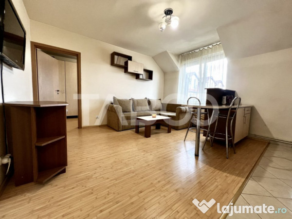 Apartament de inchiriat in Sibiu cu 2 camere localizat in zona Vasile Aaron, cu suprafata construita de 44 mp si suprafata utila 37 mp, situat la mansarda intr-un imobil cu 4 etaje.
