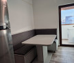 - Bucătărie pătrată, spațioasă, cu mobilă până în tavan. Masă și colțar cu spațiu de depozitare