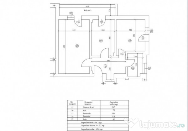 Blitz va propune spre achizite un apartament decomandat cu o suprafata total de 62 mp, din care 54.3 mp suprafata utila si 7.7 mp balconul.