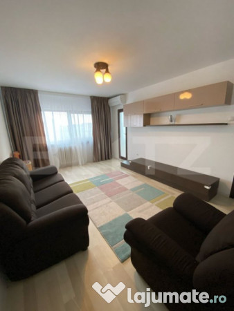 Apartamentul se vinde complet mobilat si utilat si dispune de: Feronerie Salamander cu 3 camere, usa metalica la intrare, aparat de aer conditionat Mitsubishi, geam la baie pentru o aerisire naturala. Toata instalatia electrica si sanitara a fost schimbata, iar pentru un confort sporit, dormitorul beneficiaza si de jaluzele exterioare.
