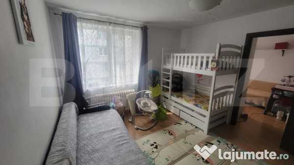 Finisaje: parchet în camere, gresie și faianță în baie și bucătărie, geamuri termopan, ușă metalică