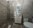Baie modernă cu cabină de duș tip walk-in;