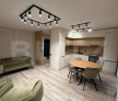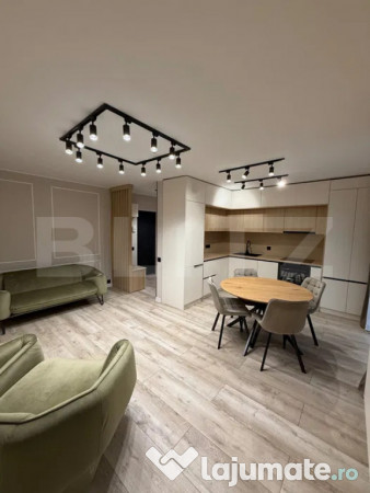 Dotările apartamentului includ centrală proprie, încălzire în pardoseală, ferestre tripan, finisaje premium (gresie, faianță, parchet de calitate superioară) și uși Porta Doors. Se vinde mobilat complet, cu mobilier MobilaDalin, bucătărie realizată din MDF și electrocasnice încorporate (plită pe inducție, cuptor, hotă, frigider, mașină de spălat vase și mașină de spălat rufe), două televizoare Smart TV și baie mobilată modern.