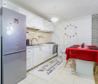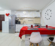Bucătăria este generoasă, complet mobilată și utilată, cu zonă dedicată pentru luat masa. Livingul oferă un spațiu confortabil pentru relaxare, fiind dotat și cu unitate de aer condiționat.