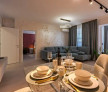 - Living generos și bucătărie deschisă cu o suprafață totală de 28 mp oferind un spațiu aerisit și primitor ideal pentru relaxare socializare și gătit