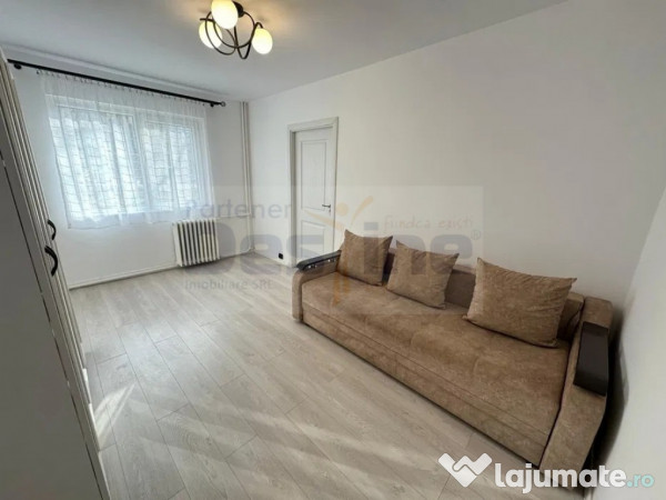 Locuința este renovată complet, cu o compartimentare practică ce include cameră de zi, dormitor, bucătărie separată, hol și baie, fiind optimizată pentru confort și funcționalitate. Renovarea a fost realizată cu materiale moderne, parchet, gresie, faianță, tâmplărie PVC cu geam termopan, uși noi, izolație exterioară, iar baia este complet utilată. Apartamentul dispune de încălzire prin sistemul de termoficare, toate finisajele fiind noi, și se vinde semi-mobilat, conform fotografiilor.