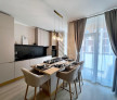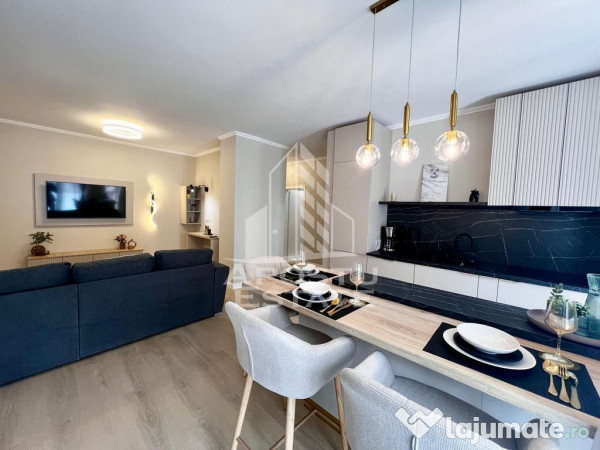 - bucatarie utilat si mobilat modern cu loc de luat masa